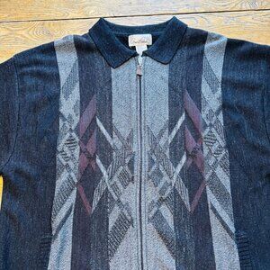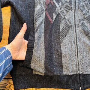 Vintage Arnold Palmer Cardigan Sweater Full Zip Mens L 42-44 Black Grey 15% Wool