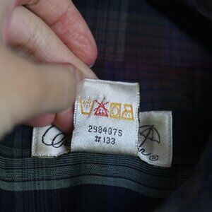• Vintage Arnold Palmer button-down shirt in a sophisticated navy, burgundy, and sage green plaid pattern