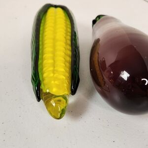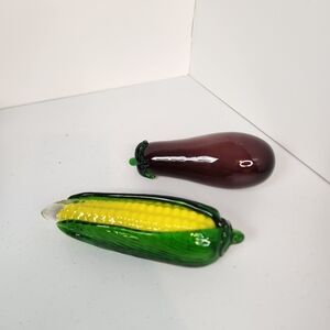 Vintage Art Blown Glass Vegetables Aubergine Eggplant Corn on the Cob Figurine