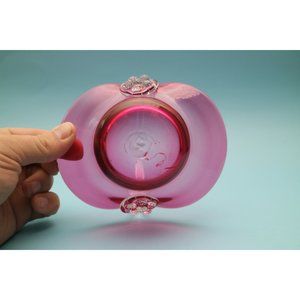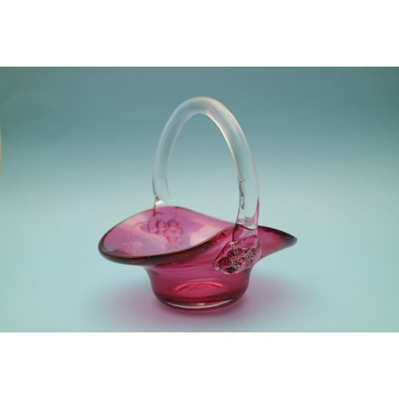 Vintage Art Cranberry Glass Basket, Ruby Red and Clear Handle with Clear Handle