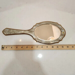 Vintage Art Deco 1930s Ausco Celluloid Large Hand Held Beveled Mirror Boudoir