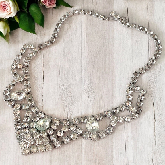 Vintage Art Deco Rhinestone Statement Bib Choker Necklace
