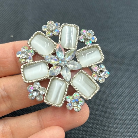 Vintage Art Deco Rhinestones Floral Circle Brooch