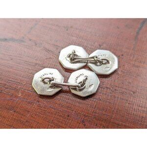 The cufflinks: The backs are marked ´Sterling¨ and with the makers mark OP in a lozenge. They have a bar or stiff link between the 2 identical sides. They are in great condition! Size: ca 0.5 inch diameter (1.2 cm)