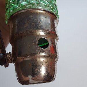 Needs a new socket and cord. Glass is is in great condition - a bit rough at the bottom end, but otherwise no chips. Plenty of corrosion on the metal parts.