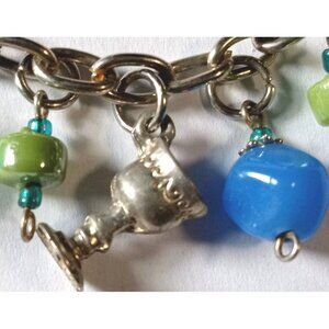 Vintage Art Glass Christian Symbols Charm Bracelet Silver Tone Chain Beads