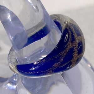 Vintage Art Glass Handmade Blue & Copper Glitter Band Ring