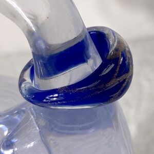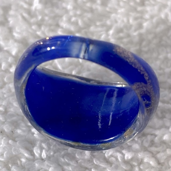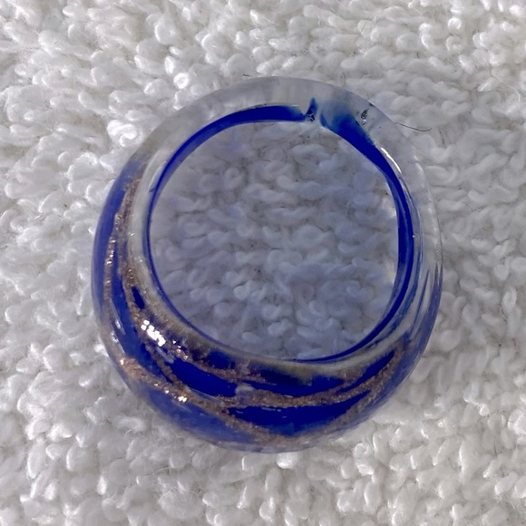 Vintage Art Glass Handmade Blue Silver Glitter Band Ring