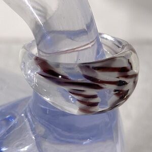 Vintage Art Glass Handmade Burgundy White Band Ring