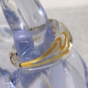 Vintage Art Glass Handmade Clear & Yellow Band Ring