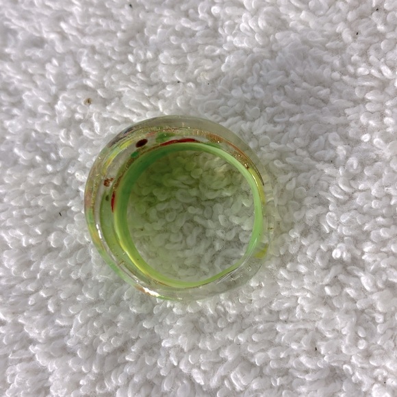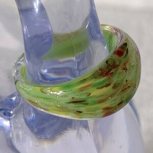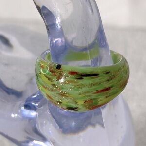Vintage Art Glass Handmade Green Red Black Gold Glitter Band Ring