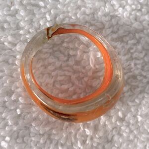 Vintage Art Glass Handmade Orange Black Gold Band Ring