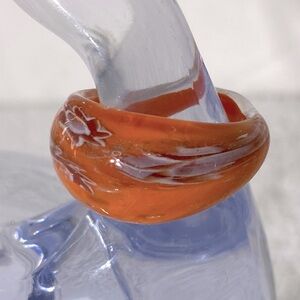 Vintage Art Glass Handmade Orange Red White Band Ring