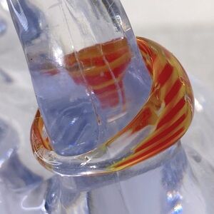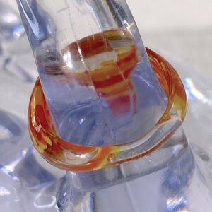 Vintage Art Glass Handmade Red Yellow Band Ring