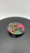 Step back in time with this stunning vintage marbled enamel brooch. The circular, gold-tone setting features a beautiful openwork filigree center with elegant, scrolling details. The surrounding enamel is a vibrant blend of deep red, rich purple, forest green, and mustard yellow, all swirled together in a unique, painterly pattern.