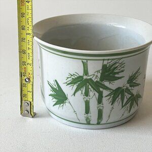Vintage Art Pottery Green Bamboo Handpainted Ceramic Small Planter Pot