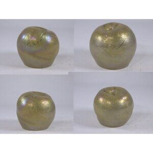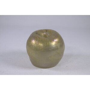 Vintage Art glass apple pen stand, artist signed glass paperweight, iridescent