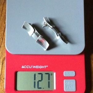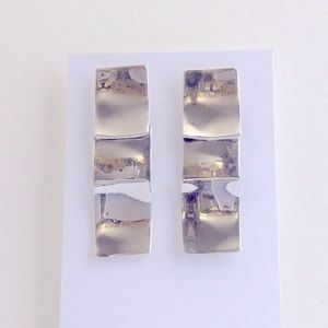 3 sleek curved rectangles join together to create these striking earrings, silver hallmarks (see photo 3), note that the stud backs do not show hallmarks. Smoke & pet free home.