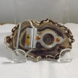 Vintage Artisan Geode with Hand Painted Deer Belt Buckle