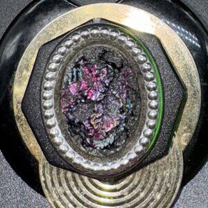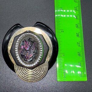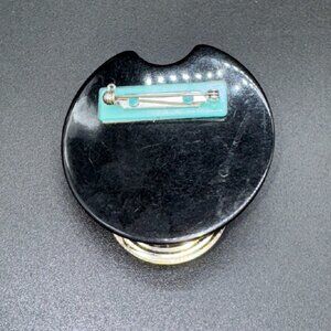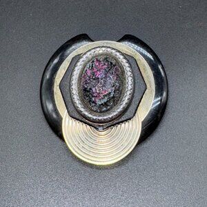 Vintage Artisan Made Brooch Black and Gold Large Round Canada