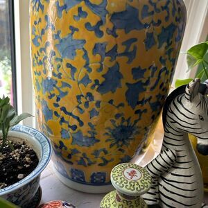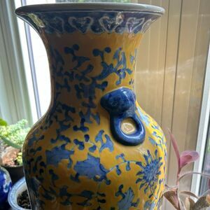 Vintage Artistic Yellow and Blue Asian Floral Vase 19" tall