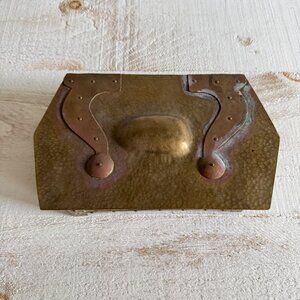 Vintage Arts and Crafts Style Brass Box with Hammered Detailing and Wood Lining