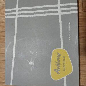 Good vintage condition. The box has some wear and spots. The knives and forks might not have ever been used. There are 2 knives missing.