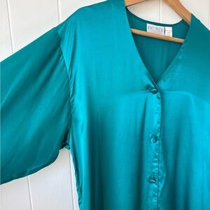 Vintage Ashley Taylor Silk Teal Button-Down Blouse | Size Medium