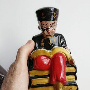 A Vintage Figurine of a Chinese Boy sitting on books and reading.
