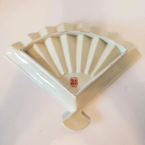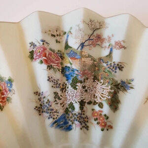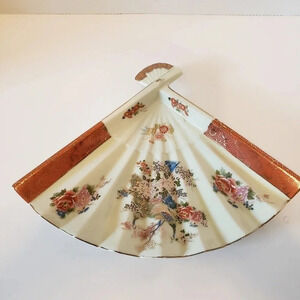 Vintage Asian Handpainted Fan Trinket Dish Floral/Peacock.
