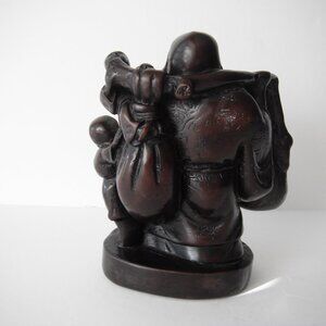 Vintage Asian Wise Man Figurine Heavy Red Resin Cast Carved Miniature 5.1/4"