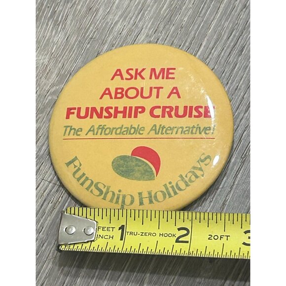 Vintage Ask Me About A FunShip Holidays Cruise Promotional Pinback Button