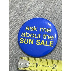 Vintage Ask Me About The Sun Sale Round Shape Blue Pinback Button