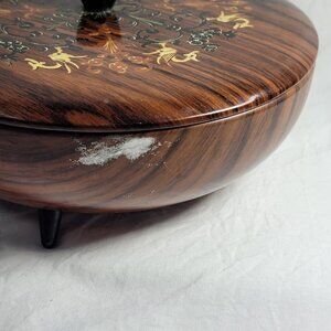 Vintage Atomic Age Jacques Metal Cookie Tin 3 Feet Faux Wood Patter MCM 50s/60s