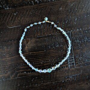 Vintage Aurora Borealis Beaded Choker Necklace Retro Dainty Girly Crystal