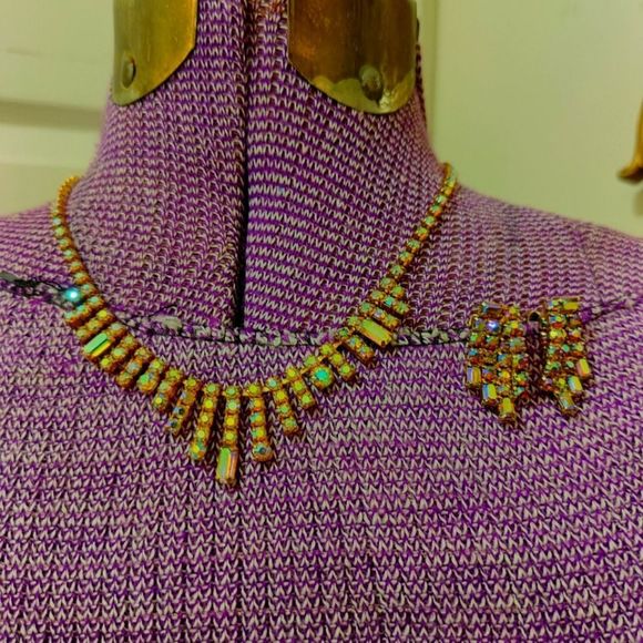 Vintage Aurora Borealis Crystal Rhinestone Clip On & Necklace Set