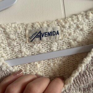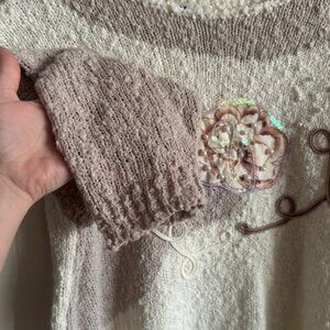 Vintage Avenida Cotton sweater, sequin, floral embroidery, size M, cream/beige