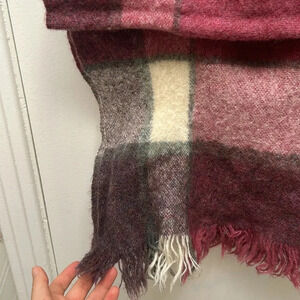 Vintage Avoca Handweavers 100% wool winter scarf in pink and purple plaid tartan