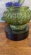 Vintage Avocado Green Glass Planter Vase Textured Diamond Pattern Bowl Retro