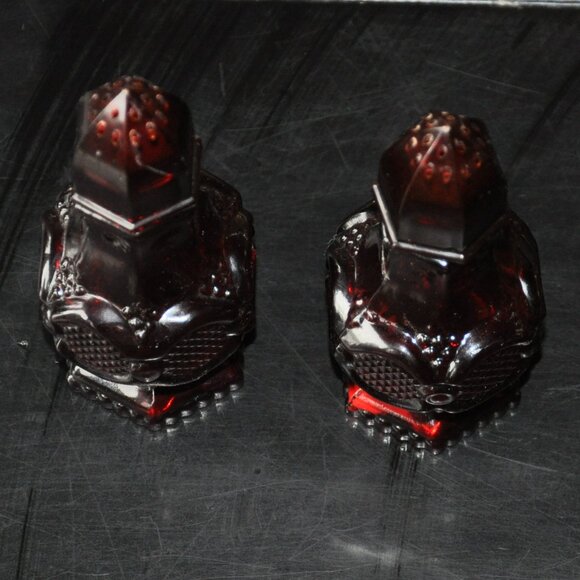 Vintage Avon Cape Cod Collection Ruby Red Glass Salt & Pepper Shaker Set