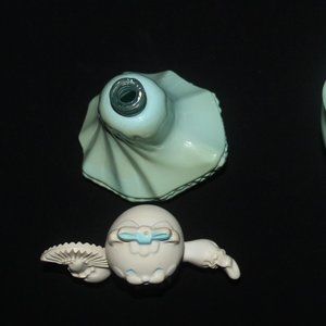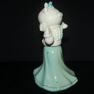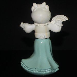 Felina Fluffles once contained Pretty & Pink cologne. This jar is empty but the fragrance remains. Her torso is plastic while her flared skirt is glass. She stands 5" tall. She's in very good condition with 3 small flecks of paint missing on her skirt. No cracks or chips.
