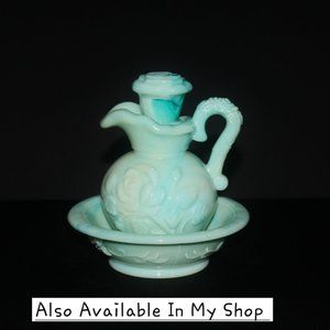 The last photo is of another Avon collectible, a jadeite pitcher (with stopper) and basin bath oil set. Sold separately, it is available in my closet.