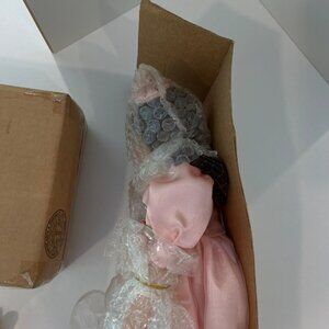 Item keywords: vintage doll, collectible doll, avon doll, pink dress doll, porcelain collectible, decorative doll, rose detail doll, avon fine collectibles, doll with stand, 11-inch doll, giftable collectible, boxed collectible, vintage display doll, Vintage new condition.