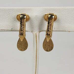 Vintage Avon Gold Tone Blue Stone Drop Clip On Earrings