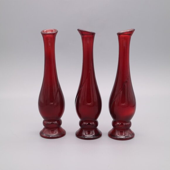 Vintage Avon Ruby Red Glass Bud Vase Apothecary Spout (Set of 3)