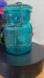 Vintage Avon Teal Blue Glass Jar Wire Handle Textured Retro Storage Container