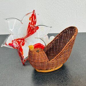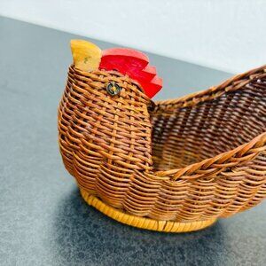 Vintage Avon Wicker Chicken Rooster Open Display Basket Holder Functional Retro
