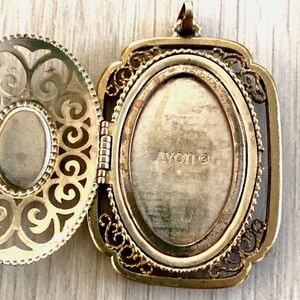 Avon picture locket 1973 Gold color Open scrollwork 2" x 1.5"