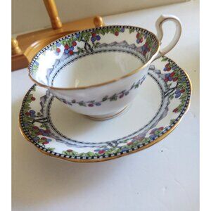 Vintage Aynsley Bone China Cup & Saucer Orange and Purple Fruit Tree - England