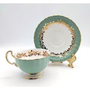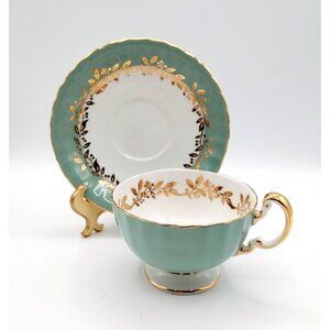 Vintage Aynsley Tea Cup & Saucer #2480 Sage w/ Orchard Fruit & Gold Leaf Trim